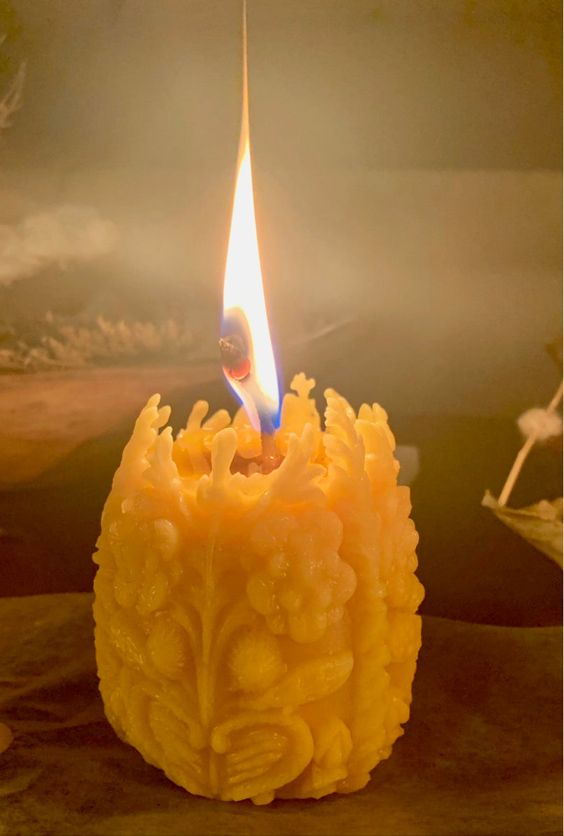 Botanical Carved Egg Candle - 100% Beeswax