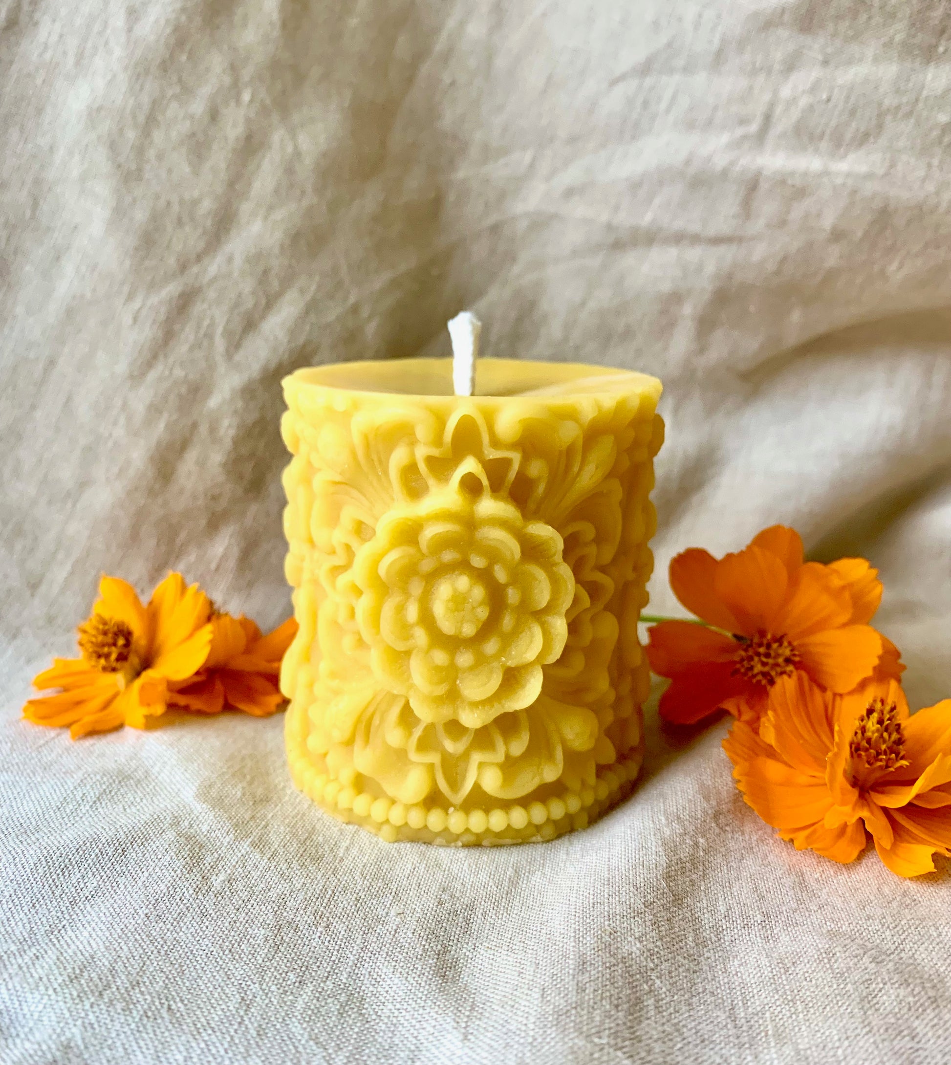 Carved Flower Mandala - 100% Beeswax Candle